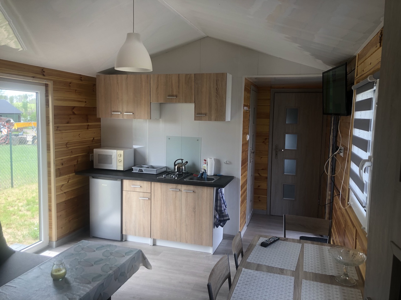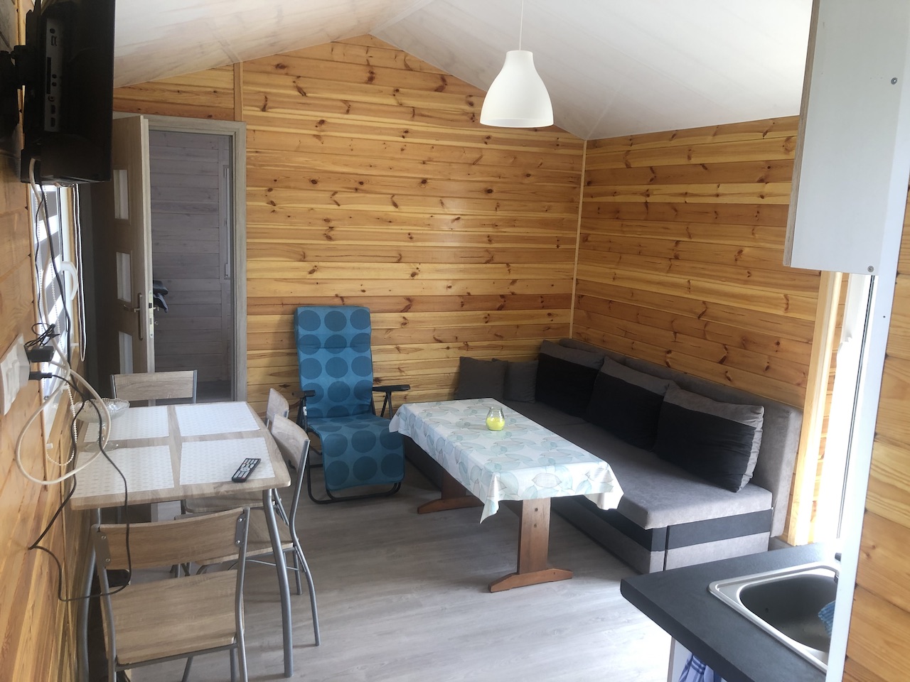 Do dyspozycji gości oddajemy dwa sześcioosobwe domki, wyposażone między innymi w lodówkę, telewizor z telewizją naziemną, czystą pościel oraz ręczniki.