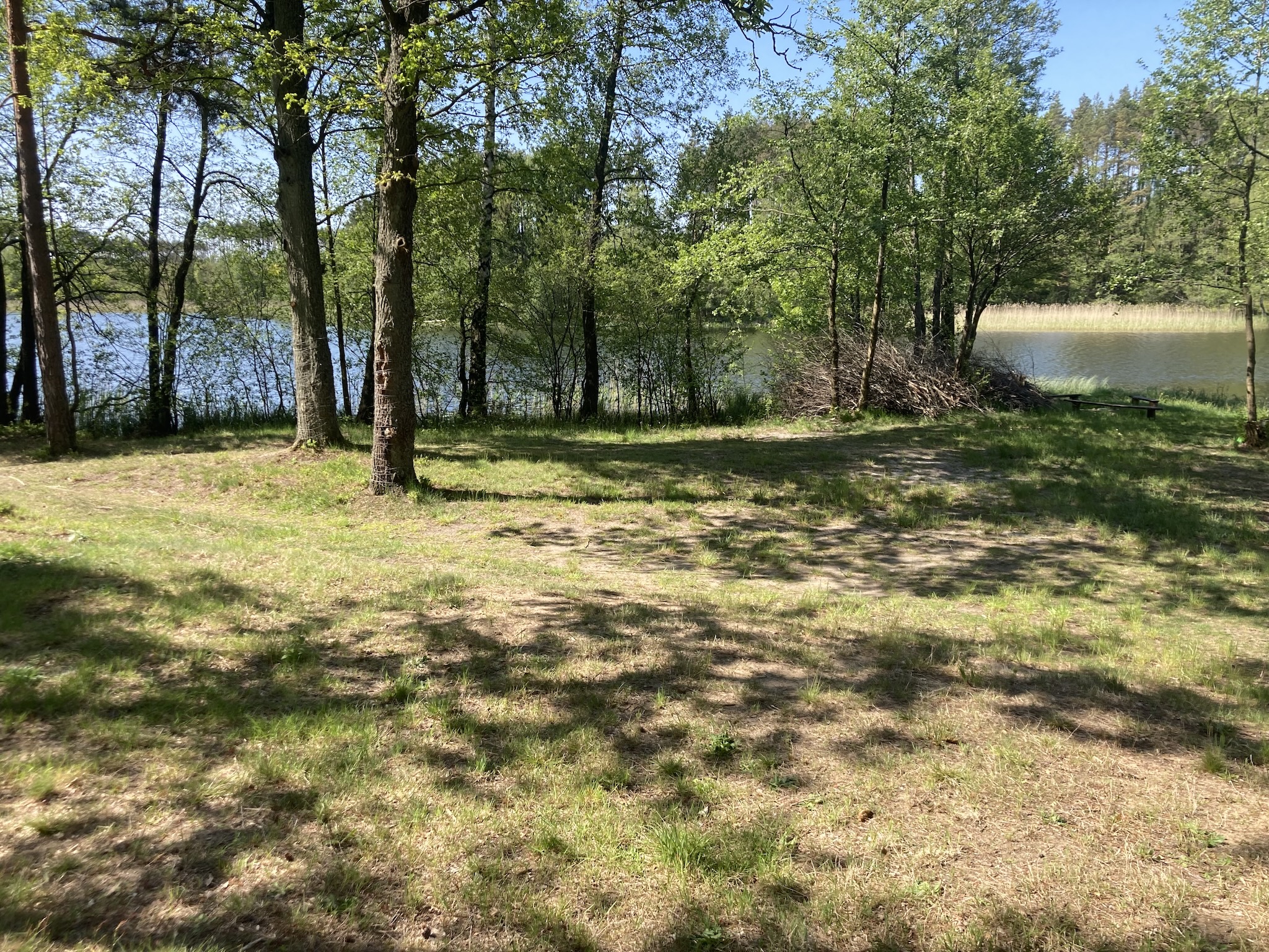 Oferujemy przestronne miejsce pod namioty, z dostępem do jeziora oraz miejscem na ognisko.